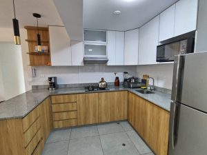 Cuenta con campana extractora y una práctica lavandería.