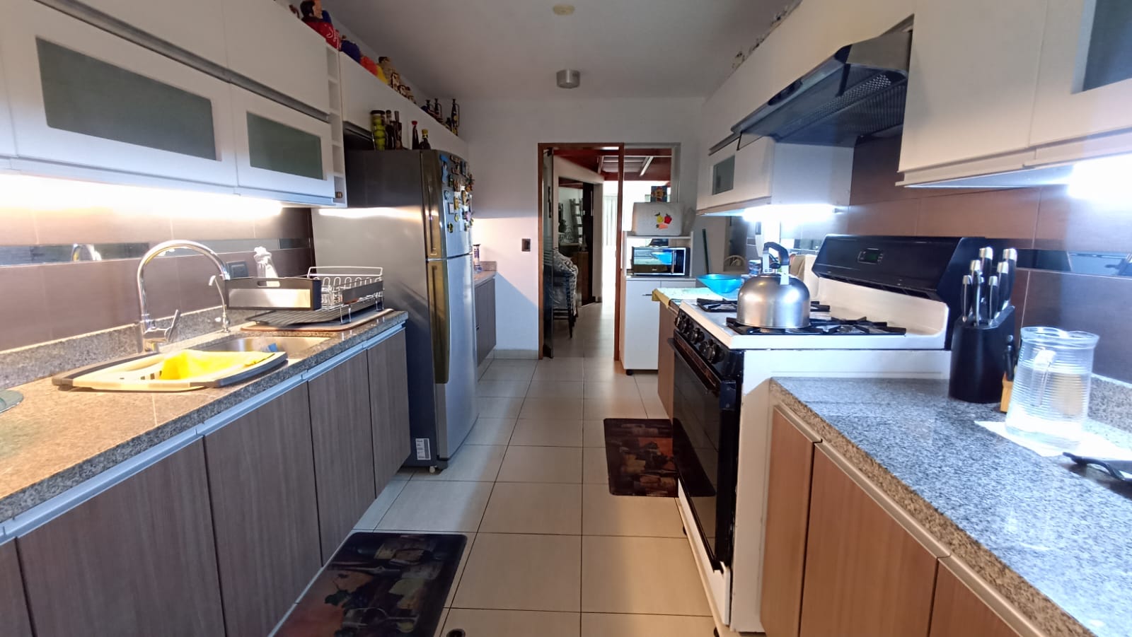 Cocina cerrada, funcional y bien iluminada
